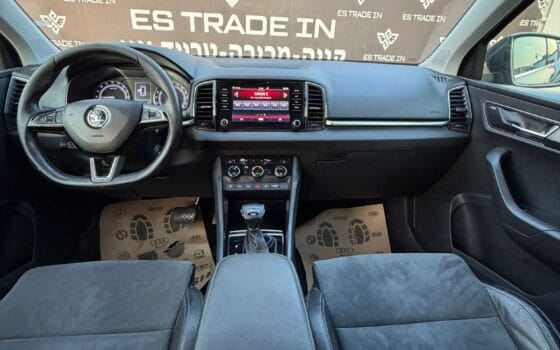 סקודה קארוק אקסקלוסיב 2019 – ג׳יפ יוקרתי ומאובזר עד הפרט האחרון. מושבי עור משולבי אלקנטרה עם כוונון חשמלי, גג פנורמי נפתח ותאורת אוירה דינמית יוצרים חוויית נהיגה מושלמת. מערכת שמע CANTON איכותית, מולטימדיה מתקדמת עם הנעה בכפתור וקילס גו, חיישני חניה ומצלמת רוורס לנוחות ובטיחות מרביים. מנוע טורבו דיזל חזק והנעה כפולה מבטיחים כוח וביצועים לכל דרך.